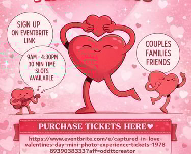 Book Now: Secure your spot via the Eventbrite link: https://www.eventbrite.com/e/captured-in-love-valentines-day-mini-photo-experience-tickets-1979869303383?aff=ebdsoporgprofile